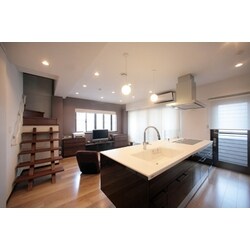 抜けない柱はデザイン性を持たせキッチンカウンターの一部に