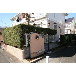 目隠しフェンスの柱脚にコンクリートのブロックを使用しました。