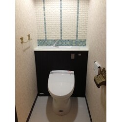 便器交換,床タイル貼り,正面にはエコカラットを貼りました。