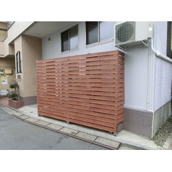 ウッドデッキ、スクリーンを設置することでプライバシーを守りながら美観を損なわないデザインです。