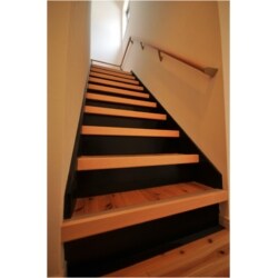 既存の階段は壊さずに、上にフローリングを貼り、蹴込み、ささらは黒く塗装しました。