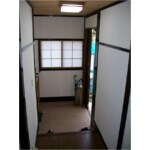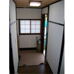 塗り壁には壁紙を貼り、木部には光沢の有るオイルステインを塗装することによって、高級感のある玄関に生まれ変わりました。