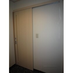 開きドアを使い勝手の良い片引き戸(アウトセット)に取替え