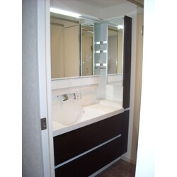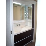 元々は、1面鏡の造り付け洗面化粧台でしたが お子様の成長と共に 収納スペースの確保が必要となり、リフォームのきっかけと