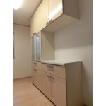 また、吊戸の扉が 照明器具に干渉する為、照明器具の移設も同時に施工しました。