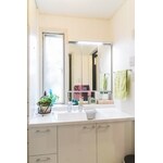 洗面ユニットの入れ替えに際し、既存の窓を活かすために上下セパレートで選び組み合わせるリフォームを提案。