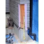 耐震診断により、壁の補強は不要でしたが現在の基準に近づけるために柱の引き抜け防止補強を提案いたしました。 既存の柱と基礎を特殊繊維のロープと専用の接着剤で緊結します。 サイディングの場合は、角部はコーナー役物をはずして作業できるため後の修復もそれほど目立ちません。 平部の修復は、新たに増えた溝をコーキングにて埋めます。 下部の水切り金物にてカバーします。