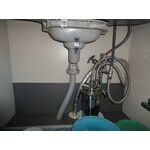 浄水器が欲しいとの要望から、配管の途中に接続するだけで水栓金具は今の金具が使える商品をご提案いたしました。水栓金具の水側から出る水は全て浄水となります。フィルターの容量が十分にあるため、一年に一度の交換で大丈夫です。