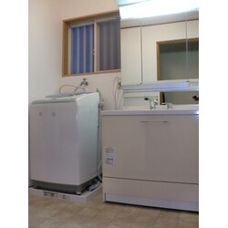 奥様が背丈の高い方ではなかったため、吊り戸棚を使いやすくするために、収納部分が踏み台になる洗面台を選びました。