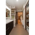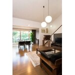 ・築35年の鉄骨造デザイン住宅。外観は既存のまま、内部からの床壁断熱改修工事、断熱サッシ工事を行い、室内側から根本的な寒さ対策を行った。 ・リビング床暖房、シーリングファン新設で吹抜構造の室内温度差を解消、目に見えない快適性を配慮した。 ・ご夫妻は仕事柄、本州各地、米国、アジアなど様々な住宅に住まわれた経験があり、交友関係も広いことから潜在的ニーズを考慮、来客時のLDKご提案を行った。 ・ロングカウンター付キッチン、食品庫、ウォークスルー収納等、サービスのし易さと、回遊動線、収納計画により、生活感を感じさせず、招く側、招かれた側、共に気兼ねなく、自由に寛げるリビングダイニングを目指した。