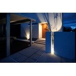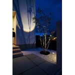 閑静な住宅街に佇むY様邸。 全体的なデザインは開放感を感じるオープンスタイルです。 白い塗り壁やコンクリートなどモノトーンに統一する事で、緑とライトアップが映えるシンプルモダンなデザインをご提案致し ました。 門まわりは、塗り壁の門柱にガラスのスリットを入れ、スタイリッシュで立体的なデザインに。 シンボルツリーは、モダンにマッチした枝葉が人気のアオダモ。夜になると枝がスポットライトに照らされ、建物の白いキャ ンパスに光と影が映り込み幻想的な雰囲気を演出しています。 庭の美観と安全性を高める「LED照明」のガーデンライティング。施工までは若干イメージしにくいLED照明ですが、完成後には大変喜んでいただいております。 裏庭はローメンテナンスなリアル人工芝を敷きリビングからは一面緑が眺めらます。 園路には天然の敷石を斜めに配置することで、直線の距離をもたせ庭全体を広く感じるよう工夫しています。 白い樹脂製の板張りのフェンスが、程よくプライバシーを確保し、コンクリートのテラスに子供が走り回ったりと、家族で楽し める憩いのスペースになりました。