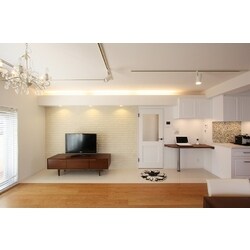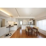 既存の2つの住居を1つの住居として快適な空間になるようプランニング致しました。設備や機能性の面からは、断熱性能を向上するため充填材を吹き付け、収納スペースも多く取り入れることにより、住居の中にデッドスペースをなるべく作らないよう計画しました。リビングは間仕切りをなくし、全体的に白を基調とすることで明るい空間を目指しました。床材には暖か味を感じるフローリングと無機質の大理石調の異なる材質を採用するなど、所々にアクセントを取り入れることで空間に変化を持たせています。機能とデザイン性のバランスの取れた住空間になりました。