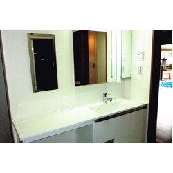 その他採用機器・設備:パナソニック C-Lineスリムワイドカウンター W1650 二面鏡 マルチシングルシャワー水栓 角形フロスト鏡