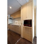 物件探しをされている途中から、弊社にお問い合わせをいただきました。一度打ち合わせを中断され、お住まいが決まり、再度打ち合わせを再開するまで、長期間のご検討をいただいておりました。明確なリノベーションのご要望があり、いかにしてそのイメージを実際のかたちにしていくか、職人も交えての打ち合わせを複数回行わせていただきました。目に見えないところでの工夫や技術の積み重ねにより、無事に完成させることが出来、お客様にもご満足をしていただき、弊社としても達成感を感じることのできる工事となりました。壁面すべてがシナベニヤ仕上げになっており、さらに天井は左官仕上げのため、室内全体にあたたかみのある雰囲気が広がり、アクセントとして金属を使うことで、スタイリッシュなテイストも付加されたこだわりのプランニングです。