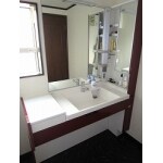 既存の洗面キャビネットを残し、鏡収納と洗面台を取替