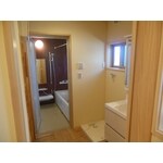 狭かった洗面室を広くしました。 埋め込みの棚も造作しましたので より広くお使い頂けます。