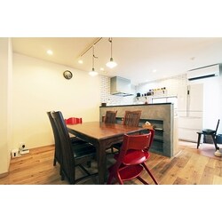 (旧株式会社ハウスドゥでの事例です。)K様は以前マンションにお住まいになられており、そちらもこだわったリフォームをされてました。 以前のリフォームではマンションのため実現できなかった無垢フローリングや室内窓の造作等、お客様のデザインや素材のこだわりをお伺いしました。 “皆がゆっくりできる大きなリビングが欲しい”というK様。しっかり住宅調査をした上で、可能な部分の壁を取り22帖もある開放的なLDKになりました。キッチンは汚れの気になるレンジフードだけ交換し既存を生かして、目隠しとなるカウンター収納を造作しました。ダイニング側はご主人様こだわりのモルタル仕上げにし、その出来栄えにとても喜んで下さり、施工中もたくさん写真を撮ってらっしゃったのが嬉しかったです。お手持ちの鏡を使い、モザイクタイルを貼って造作した洗面台を気に入って下さり、光栄に思います。 リフォーム後に、お友達を呼んでお披露目会をしたり、飾りたかった絵をかけたり、家事をしながらお子様の目が届くようになった等のエピソードも頂き、気に入って頂けているのが伝わってきて本当に嬉しく思っております。