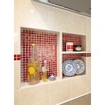 【きっかけ】 以前も工事をお願いし、前回リフォームした時のローン返済が終わったことがきっかけで、古くなってきた水廻りをリフォームしたいと思いました。 【夢・悩み】 ・キッチンの日当たりが良すぎて暑いので涼しくしたいが、明るさも取り入れたい。 ・キッチンと家事コーナーに仕切りがあり、使いづらい。 ・荷物が多いので、収納スペースを確保したい。 ・お風呂を広くしたい。 ・トイレの湿気が多いので、何とかしたい。 /「キッチンの赤のモザイクタイルがお気に入りの空間になりました!」 以前は暑かったキッチンは過ごしやすくなり、キッチン横のニッチができたことによって、長い間眠っていたお土産が飾れるスペースになって嬉しいです。また、キッチンと家事コーナーを行き来でき、収納スペースもたっぷりあり、使いやすくなりました。 お風呂は以前より広くなり、ゆったり入れるので快適です。トイレもエコカラットを取り入れてこだわったので、とても良い空間になり嬉しく思ってます。