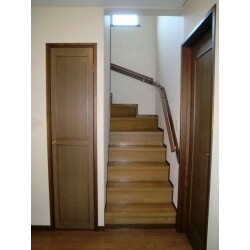 お客さまの身長に合わせて手すりの高さを決めました。下地があるところを探し、専用ベース材を使用して手摺を設置しました。
