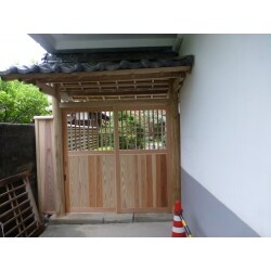 最近見かけることも少なくなってきた、立派な木造の門なのですが、古くなってきて開き戸の開閉も難しくなっていたため、上吊りレールを使用し、開閉の簡単な引違の扉に変更致しました。