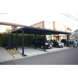 新築のお宅に3台用カーポートを新設させていただきました。 お客様のご要望で新潟の雪にも対応できる積雪150cmタイプをご提案しました。 土間コンクリートを分括し、柱下はアクセントに化粧砂利を敷き、お色はカームブラックをお選びになりシックな印象に仕上がりました。