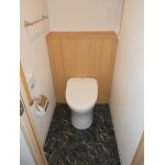 シンプルモダンな造りのマンションでしたので、ご希望のレストパルトイレに合わせて東リの塩ビタイルロイヤルストーンをご提案しました。 ホテル調の仕上がりにとてもよろこんでいただけて良かったです。 レストパルは原状から取り付け難易度が高かったのですが、職人さんの頑張りできれいに取り付けできました。