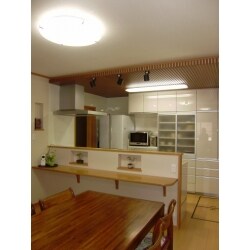 台所の天井のデザインには感動しました。全体的に明るくなり、今までは昼間でも照明が必要でしたが、これからは点けなくても大丈夫になりました。近所の友達がよく遊びに来るのですが、お陰さまで自慢のキッチンです。