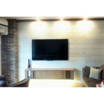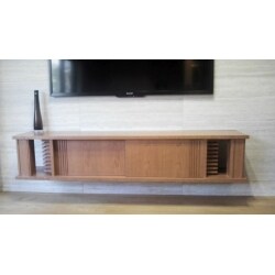 ご主人様よりこだわりのテレビボードを作りたいとのご要望でした。工場で実際に木材のサンプルを確認し、細かく打ち合わせを行い、程よい明るさとなめらかな肌触りのブラックチェリー材をお選びいただきました。 オリジナルのテレビボードが仕上がり、大変ご満足いただけました。