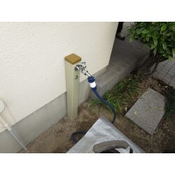 お庭にある散水栓の蛇口が低い位置にあり使いづらい、との事で立水栓に改修することとなりました。 お風呂のシャワー水栓に水漏れがあるとのことでしたにで、この機会にそちらも工事をすることとなりました。