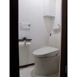 もともと隅付トイレでしたが、空間をより広くするために、タンク付のトイレの中で最小サイズの便器を採用しました。