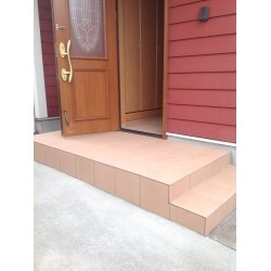 白華現象により白くなってしまった玄関タイルの張り替えをご依頼いただきました。300㎜角の大判タイルを使用したことで、高級感があり、またスッキリとした印象の玄関となりました。