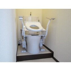 足腰が弱く、立ち座りに不自由なご主人様のため、リフトアップ便座にリフォームしました。