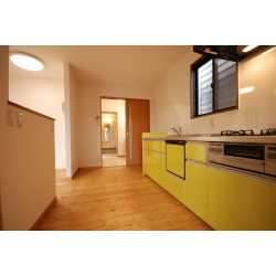 中古住宅購入をきっかけにリフォームをされたお客様です。水廻りから内装、外壁まで全体的なリフォームになりました。 グリーンのシステムキッチンがアクセントとなり明るい空間になりました。 キッチンから洗面室、浴室までの動線を確保しました。