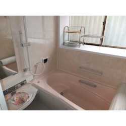 タイル張りの浴室をシステムバスに取替え。壁は大理石調、浴槽はピンク系で仕上げ、全体的に可愛くまとまりました。脱衣場も前面改装して綺麗になりました。