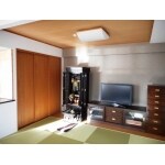 和室は間仕切り撤去し琉球畳を入れて和風のイメージは残しました。アクセントとして、壁面に調湿機能がある木材を貼りました。