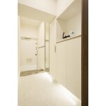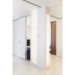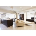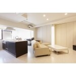 お施主様は、これまで暮らしていた海外から戻られることになり、今まで賃貸していたマンションに住むことに。 経年による老朽化のため、上の階から洗面室に漏水があり、全面リフォームを決意されました。 今後も転勤があることを想定し、将来的に賃貸できる間取りに。細かく仕切らず、可動間仕切りを採用することでフレキシブルに可変できる開放的な空間を追求しました。 また、3方向から可動間仕切りが集まる、戸当たりを兼ねた光柱もポイント。壁面収納やダウンライト、天井埋め込みタイプのエアコンを採用し、シンプルなスッキリ空間が完成しました。