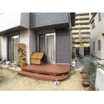 材料はゼランガンバツを使い、木材保護塗料キシラデコールで塗装をしています。ステップを設けたことで、ワンちゃんだけでなくお子様方もお庭に出やすくなり、とても喜んでいただけました。