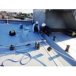 マンションの屋上防水改修工事です。塩ビシート防水絶縁工法です。