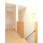 【after2】 間取り変更をして2室に間仕切り、 トイレと収納部を造りました。 突き当りが収納で左手が新しいトイレの入り口です。
