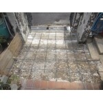 お婆さんの為に、アプローチ階段が危ないので段差解消でスロープ及び手摺(グリップライン)の設置