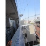 毎年、ベランダに鳩が入り巣を作るとのことで、防鳥ネットを張り侵入を防ぐ工事