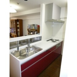 ショウルームで見て、一目で赤い扉が気に入りました。対面キッチンの水切り棚も、使い勝手が良さそうだったので、Lクラスのキッチンを選びました。実際に使ってみて、大変満足です。