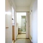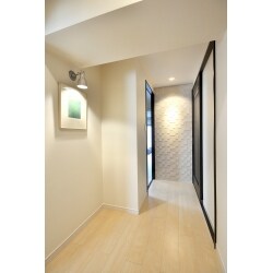 真っ白な壁では淋しいので、壁にアクセントをつけました。廊下がお洒落な仕上がりになりました。