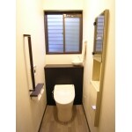 手すりや紙巻き器など、後ろのカウンターと同じ濃い目のブラウン色で統一する事により、トイレ空間自体がスタイリッシュなものとなりました。