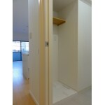 狭さを感じさせないようにした玄関
