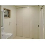 洗面化粧台位置を変更し、収納スペースを広くとりました。