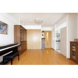 一昨年に水回り設備を一新させて頂き、今回は内装等のリフォームのご依頼を頂きました。 バルコニーに面していた和室を取り壊し、明るく広いリビングに。床は防音効果に優れたフローリング材に張替えました。コストに配慮して35年前の建具枠をそのまま活かすため、建具類を自社職人で造作しました。 明るくて広いリビング・ベッドで寝起きしたいとのご要望でした。築35年の建具枠と現在市販の建具はサイズが合わないため、建具を造作することで壁を壊さずにコストを抑えて建具の入替えを実現できました。