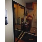 【before】キッチンに通じるドアがあることで、洗面化粧台のサイズが限られていました。奥の収納も買い足した家具を設置していった結果、ちぐはぐな印象になってしまいました。