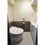 トイレも、洗面室と浴室と一体的な空間で明るく広々