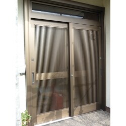 今回取付した玄関引戸は、LIXILトステム「リシェント」。 既存の枠の上に新しいドアを枠ごと取り付ける「カバー工法」で施工しますので1日で簡単に完成し、かつ壁や床などを傷める心配もなくリフォームに最適です。 断熱タイプの玄関引戸との事もあり見た目の重厚感は勿論、内部からのカギは3箇所・外部からは2箇所のカギとなり防犯性がUP、また断熱性にも優れており、安心でエコな玄関引戸になりました。